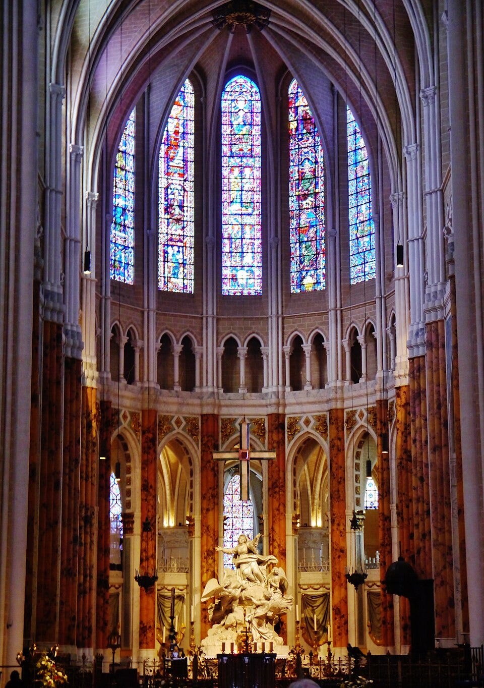 Gothic cathedrals were coordination technologies of extraordinary sophistication: generations of builders, none of whom met each other, could each contribute to a single structure because the constructive logic - the projective conventions - were shared and the purpose (making the sacred physically present) was stable across centuries. Approach a Gothic doorway from a hundred meters: you see the overall form. From ten meters: the sculptural program. From one meter: the individual figures. From ten centimeters: the texture of the stone. The eye never runs out of information. This is why ornament matters - it provides the smallest-scale layer of the hierarchy, the entry point into the projective chain. Without it, the progression is undefined at its base, and everything above it becomes “free-floating and ungrounded.”13